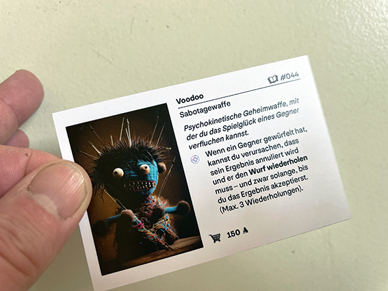 Mit einer Sabotagewaffe kann zum Beispiel das Würfelergebnis eines Gegners manipuliert werden.