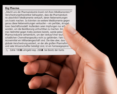 👁️⃤ Hüte dich um jeden Preis vor den Fakten! Immer wenn du eine Faktencheck-Karte ziehen musst, rücken dir die verlogenen Mainstream-Medien Drecksäcke (wie du sie nennst) auf die Pelle! Die knöpfen sich dann eine deiner liebsten Verschwörungstheorien vor und versuchen dein angeblich verschrobenes Weltbild zurechtrücken! Leider endet das meistens ziemlich ernüchternd. Nicht für sie, sondern für dich.