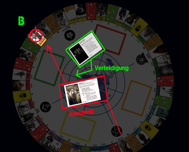 ⛧ Diese Schlüsselpositionen sind auf 24 Felder auf dem Spielbrett verteilt. Du kannst eine Schlüsselposition kaufen, wenn du mit deiner Spielfigur auf dem entsprechenden Feld landest und dir noch kein Gegner zuvorgekommen ist. Wenn die Position bereits besetzt ist, musst du dem Besitzer ein Schutzgeld entrichten. Oder du kannst deine Geheimwaffen einsetzen und die Position mit Gewalt unter deine Kontrolle bringen. (→ Terroraktivitäten). Das gilt auch für (unbesetzte) Schlüsselpositionen, die der Schattenbank gehören.