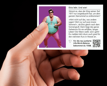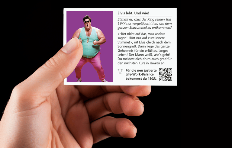 👁️⃤ Erlebe aus erster Hand die ungeheuerlichsten und skandalösesten Ereignisse der Geschichte, die bis heute Gegenstand vieler Verschwörungstheorien sind – von "Elvis lebt" bis Pizzagate. (Wenn du mehr darüber erfahren willst, kannst du den QR-Code auf der Karte scannen.)