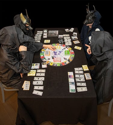 ⛧ Adrenochrom bildet sich im menschlichen Körper als Nebenprodukt von Adrenalin und gilt bei den geheimen Eliten wegen seiner angeblich verjüngenden Wirkung als hoch gefragte Superdroge. In Comploty dient 'Adrenochrom' als Währung. Die beidseitig bedruckten Banknoten sind in 6 verschiedenen Stückelungen erhältlich: 10er, 20er, 50er, 100er, 500er und 1000er. Alles Geld wird von der so genannten "Schattenbank" verwaltet und verteilt - einer mächtigen Institution, die den Schwarzmarkt überwacht, eine Art Nationalbank der Unterwelt. Ein Spieler leitet die Aktivitäten der Schattenbank. Er kann gleichzeitig auch als "normaler" Spieler mitspielen.